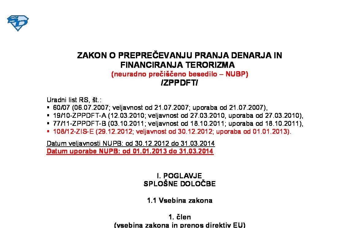 ZAKON O PREPREČEVANJU PRANJA DENARJA IN FINANCIRANJA TERORIZMA (ZPPDFT-2 - neuradno prečiščeno besedilo) 02.04.2025 [!] 08.08.2025 19.03.2025