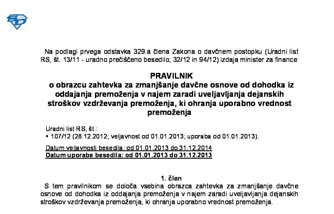 Članek nima posebnosti! Priloga 1 - ZAH za zmanj DO od DOH iz oddajanja PREM v najem zaradi uvelj stroškov vzdrževanja PREM, ki ohranja uporabno vred PREM.pdf