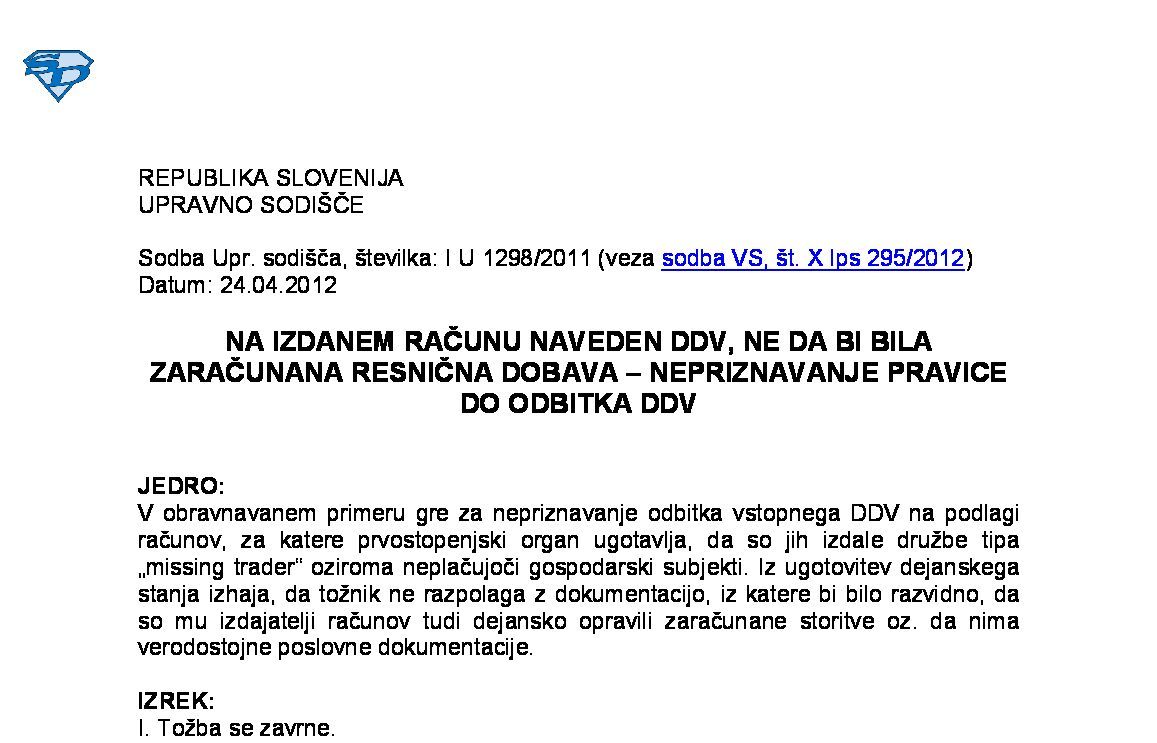 IZPOLNJEVANJE POGOJEV ZA DOBAVO BLAGA ZNOTRAJ UNIJE, OPROŠČENO PLAČILA DDV NA PODLAGI 46. ČLENA ZDDV-1 – Nepopolne CMR listine (I U 1704/2021-38) 27.11.2024 15.10.2025