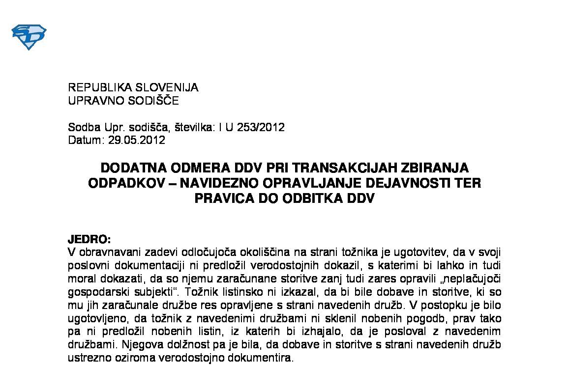 IZPOLNJEVANJE POGOJEV ZA DOBAVO BLAGA ZNOTRAJ UNIJE, OPROŠČENO PLAČILA DDV NA PODLAGI 46. ČLENA ZDDV-1 – Nepopolne CMR listine (I U 1704/2021-38) 27.11.2024 15.10.2025