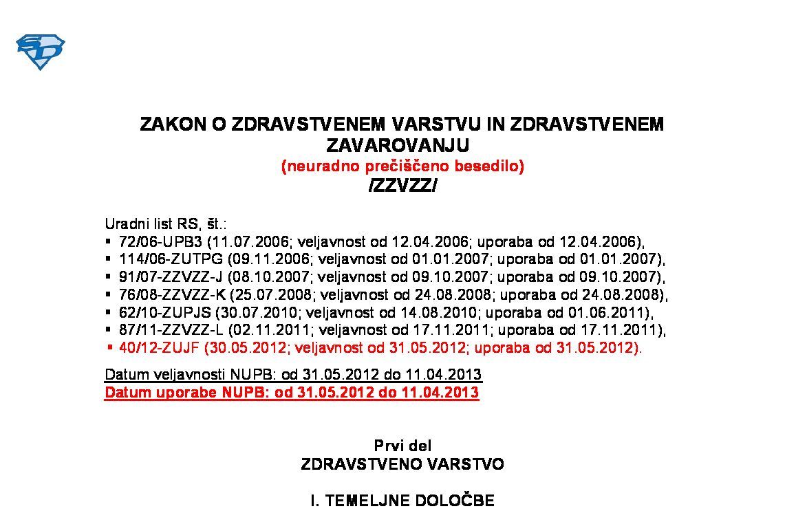 ZAKON O ZDRAVSTVENEM VARSTVU IN ZDRAVSTVENEM ZAVAROVANJU (ZZVZZ - neuradno prečiščeno besedilo) 21.05.2025 13.05.2025