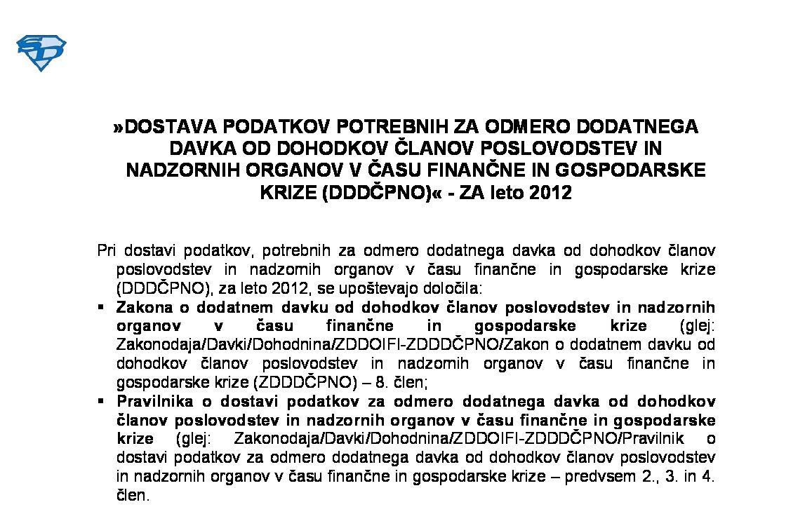 DOSTAVA PODATKOV POTREBNIH ZA ODMERO DODATNEGA DAVKA OD DOHODKOV ČLANOV POSLOVODSTEV IN NADZORNIH ORGANOV (DDDČPNO) V ČASU FINANČNE IN GOSPODARSKE KRIZE - ZA leto 2024 28.01.2025