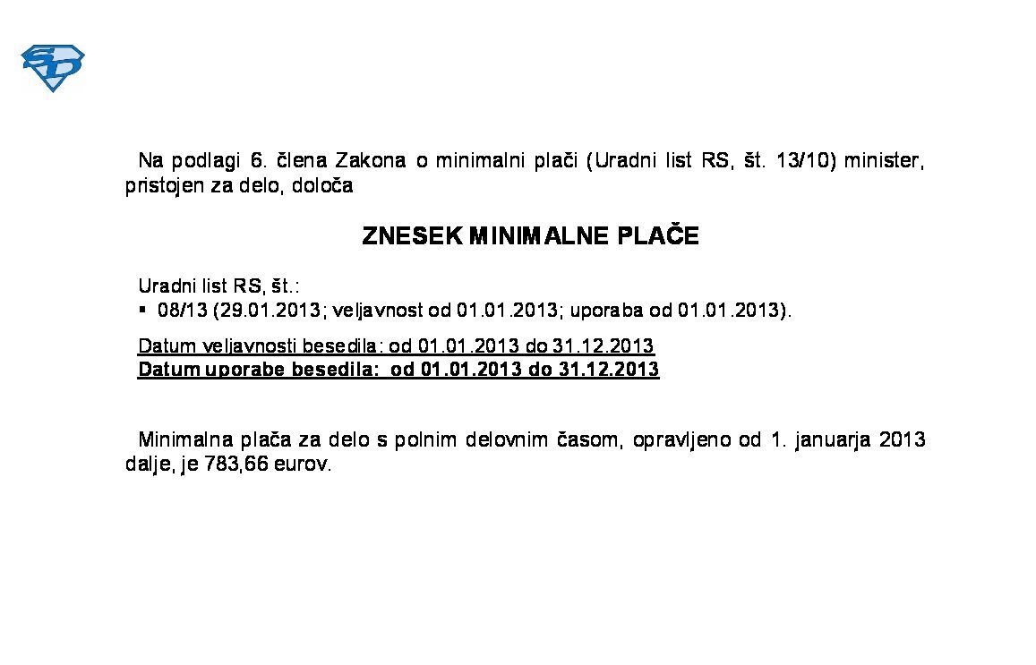 Za plače/plačilo za opravljeno delo od 01.01.2013 do 31.12.2013. Članek nima prilog!