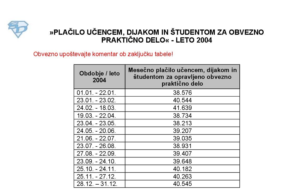 PLAČILO VAJENCEM, DIJAKOM IN ŠTUDENTOM ZA OBVEZNO PRAKTIČNO DELO - leto 2024 20.03.2024