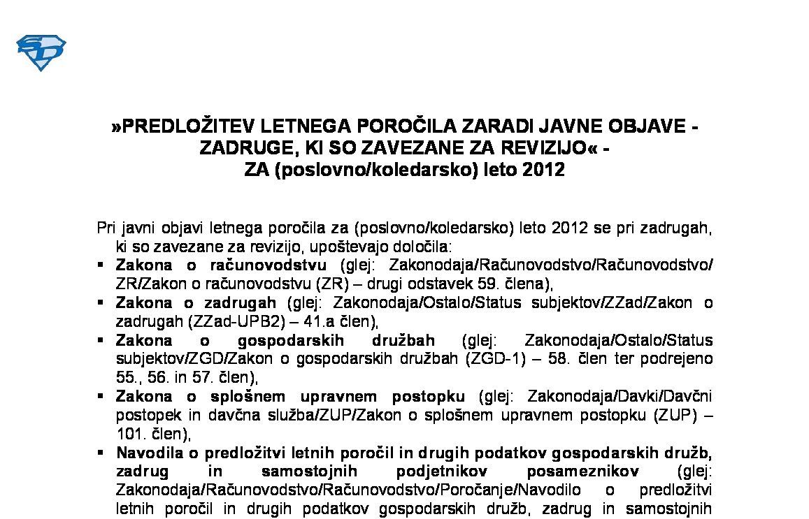 PREDLOŽITEV LETNEGA POROČILA IN PODATKOV IZ LETNEGA POROČILA ZA POTREBE DRŽAVNE STATISTIKE – ZADRUGE - ZA (poslovno/koledarsko) leto 2024 31.01.2025