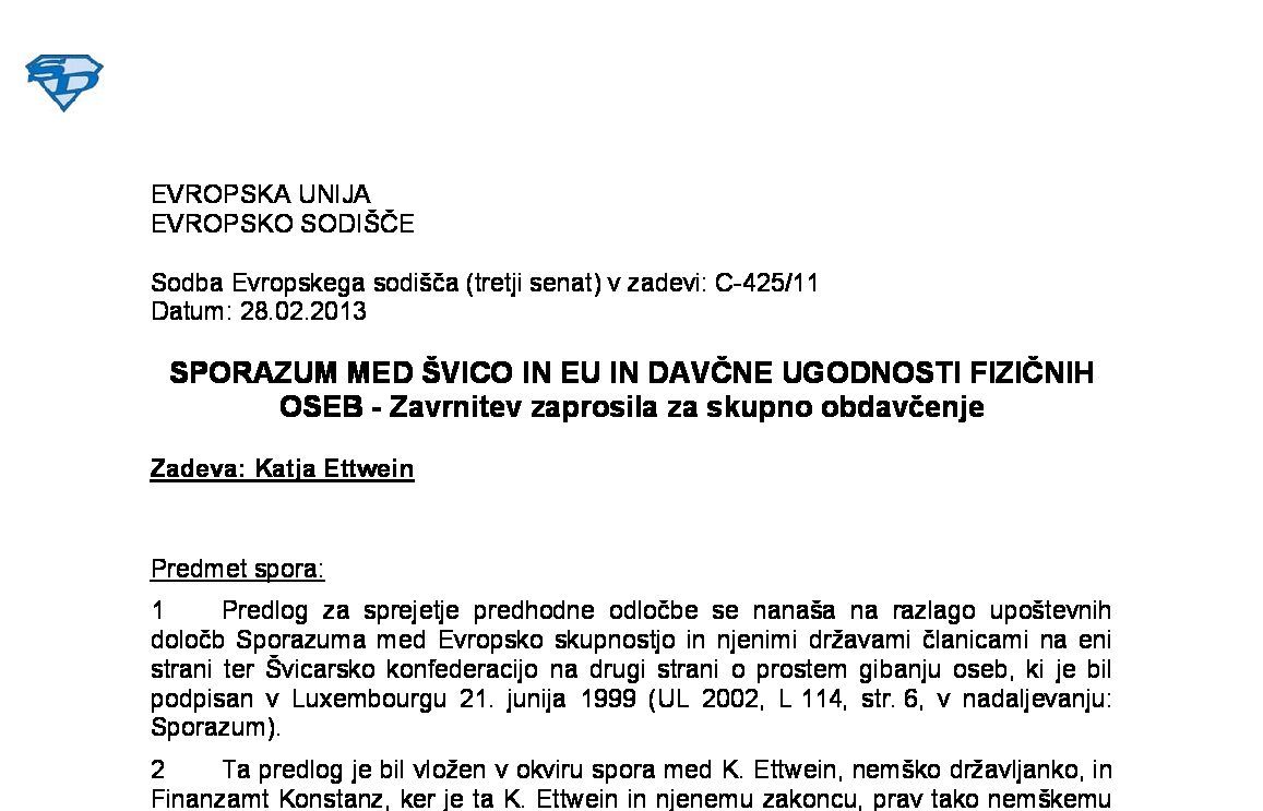 DELAVEC IZ DRŽAVE ČLANICE, KI JE PRENESEL SVOJE STALNO PREBIVALIŠČE V ŠVICO – Davčne ugodnosti – Omejitev na omejeno obdavčljive delavce, ki so rezidenti države članice ali države pogodbenice Sporazuma o EGP – Enako obravnavanje (C-627/22) 30.05.2024 31.05.2024