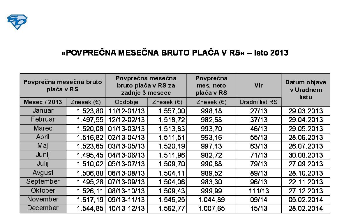 POVPREČNA MESEČNA BRUTO PLAČA V RS - leto 2023 04.03.2024
