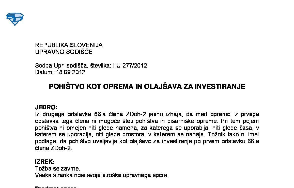 PREJEM POSLOVNEGA DELEŽA V DRUŽBI OB ANGAŽIRANJU PRI SANACIJI DRUŽBE – Darilo, ki se obdavčuje po ZDDD, ali dohodek obdavčen po ZDoh-2 (I U 1495/2022-13) 20.11.2024 10.07.2025