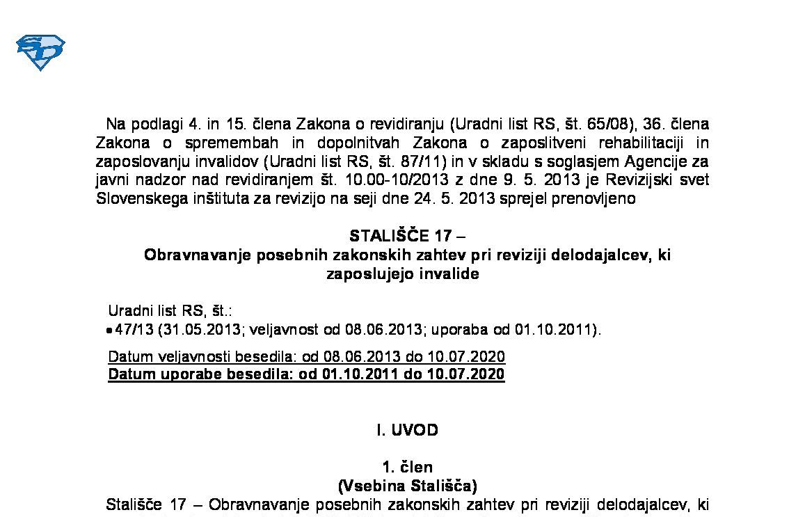 Stališče se začne uporabljati za še neizdana revizorjeva poročila o revidiranju računovodskih izkazov in pregledu letnih poročil ter opravljanju dogovorjenih postopkov za računovodske izkaze obdobij, ki so se začela 1. oktobra 2011 ali kasneje.