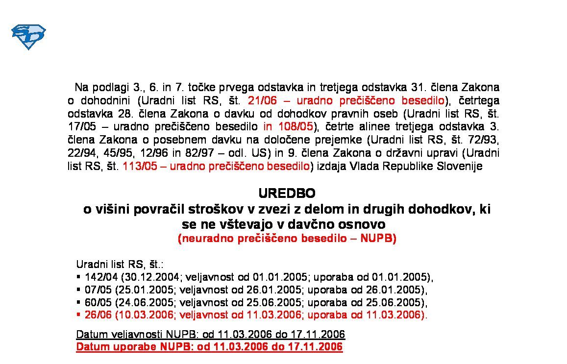 Uredba o davčni obravnavi povračil stroškov in drugih dohodkov iz delovnega razmerja (Uredba-davčna - neuradno prečiščeno besedilo) 01.01.2023 [!] 27.12.2022