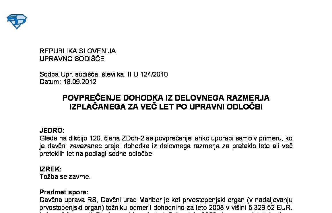 PREJEM POSLOVNEGA DELEŽA V DRUŽBI OB ANGAŽIRANJU PRI SANACIJI DRUŽBE – Darilo, ki se obdavčuje po ZDDD, ali dohodek obdavčen po ZDoh-2 (I U 1495/2022-13) 20.11.2024 10.07.2025