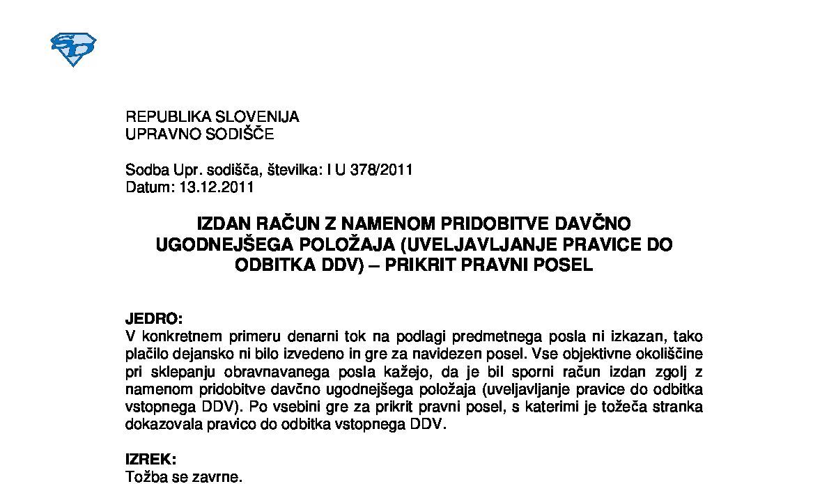 IZPOLNJEVANJE POGOJEV ZA DOBAVO BLAGA ZNOTRAJ UNIJE, OPROŠČENO PLAČILA DDV NA PODLAGI 46. ČLENA ZDDV-1 – Nepopolne CMR listine (I U 1704/2021-38) 27.11.2024 15.10.2025