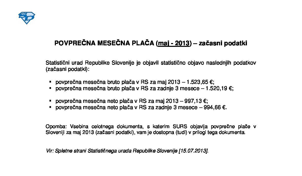 Članek nima posebnosti! Povprečne mesečne plače - Slovenija - maj 2013 (začasni podatki).pdf