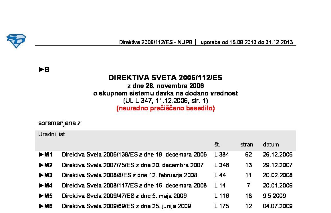 DIREKTIVA SVETA 2006/112/ES z dne 28.11.2006 o skupnem sistemu DDV (neuradno prečiščeno besedilo - NUPB) 14.04.2025 26.06.2025