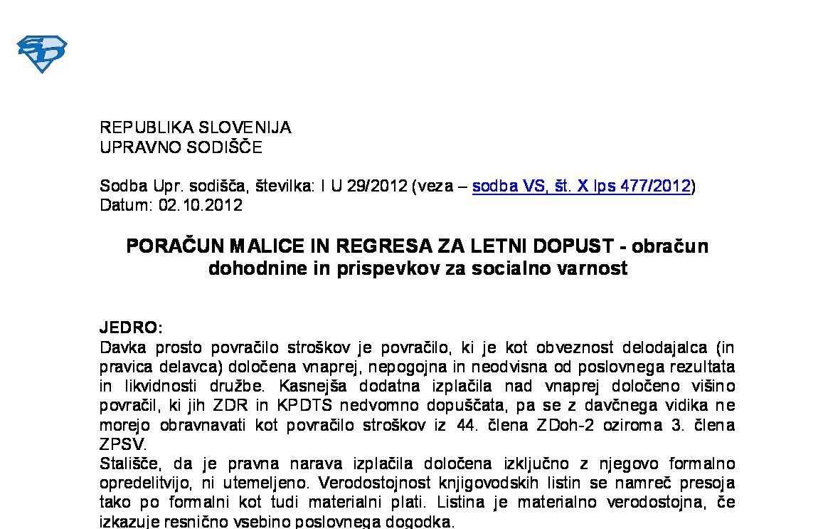 DOHODEK IZ DELOVNEGA RAZMERJA – Čezmejni delovni migrant – Stroški prehrane med delom (II U 195/2022-15) 30.09.2025 05.12.2025