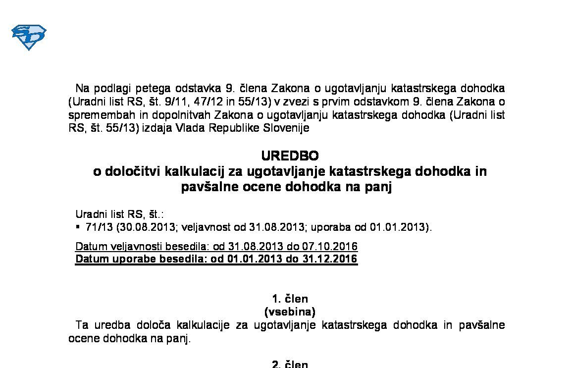 Čeprav je datum veljavnosti Uredbe od 31.08.2013 naprej, se le-ta z vsebinskega zornega kota uporablja za obdobje od 01.01.2013 naprej (glej - 9. člen ZUKD-1B).