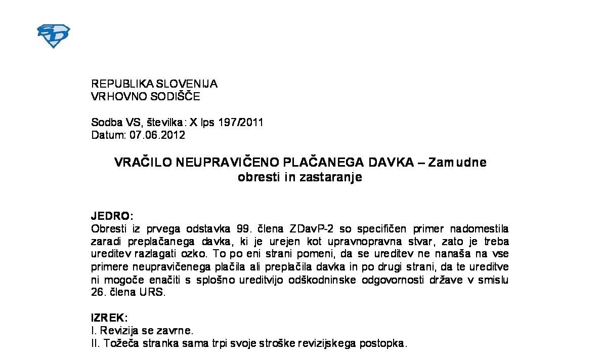 OBRAČUNAVANJE OBRESTI V POSTOPKU DAVČNEGA NADZORA (X Ips 123/2020) 28.08.2024 15.10.2024