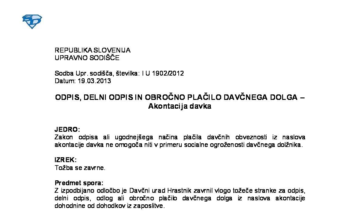 VRAČILO PLAČANIH DAJATEV PO DAVČNEM OBRAČUNU IZ POSTOPKA DIN (IV U 124/2022-15) 10.03.2025 12.09.2025