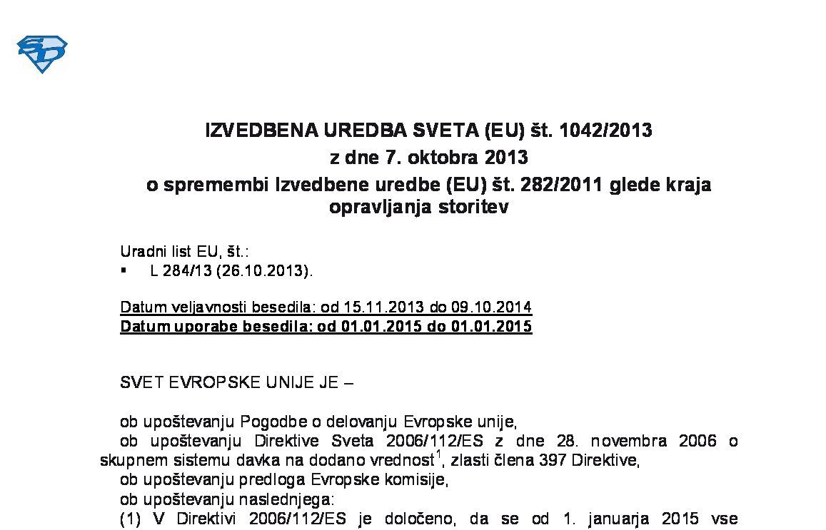 Izvedbena uredba Sveta (EU) št. 1042/2013 se je spremenila še preden se je začela uporabljati. Sprememba temelji na popravku 2. člena uredbe.