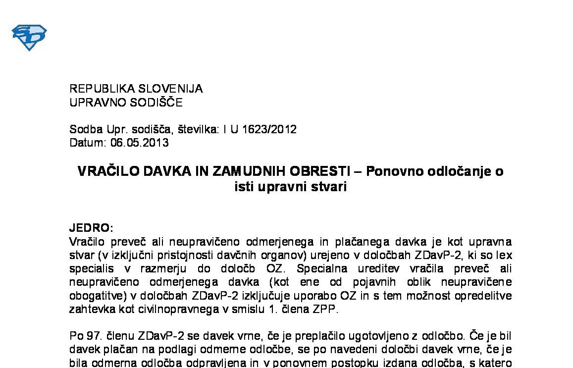 VRAČILO PLAČANIH DAJATEV PO DAVČNEM OBRAČUNU IZ POSTOPKA DIN (IV U 124/2022-15) 10.03.2025 12.09.2025