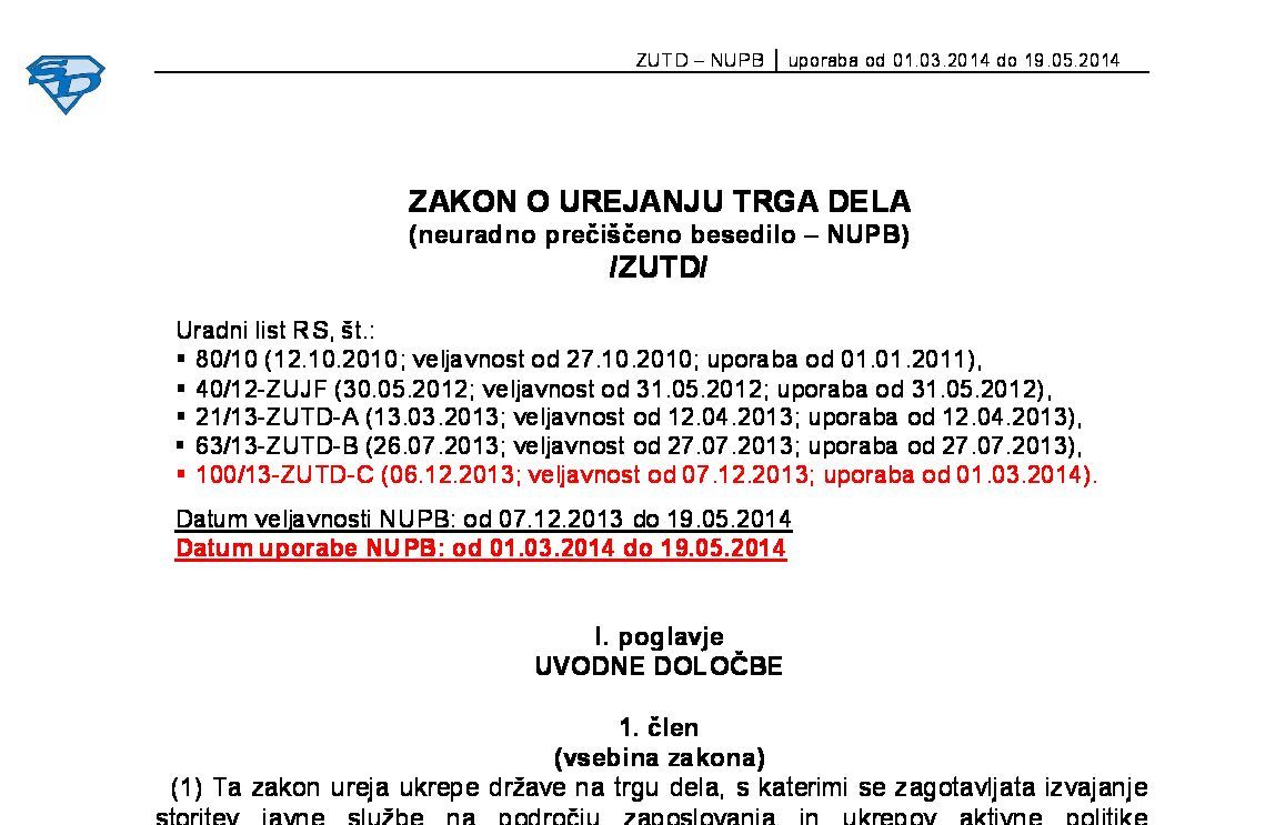 | ZAKON O UREJANJU TRGA DELA (ZUTD - neuradno prečiščeno besedilo) | 29.10.2025 | [!] | 29.10.2025 | |