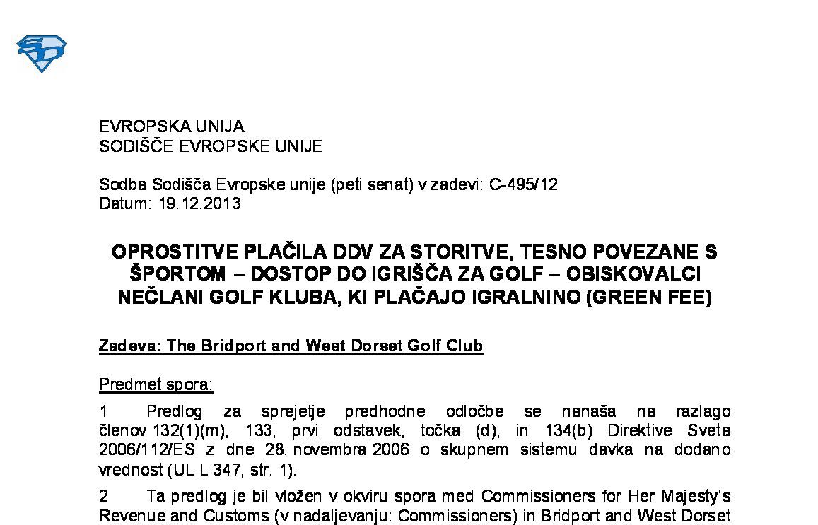 VRAČILO DDV DAVČNIM ZAVEZANCEM, KI NIMAJO SEDEŽA V DRŽAVI ČLANICI VRAČILA – GLAVNA IN POMOŽNA STORITEV – UMETNA DELITEV ENOTNE STORITVE – Neobstoj premestitve predmeta dobave (C-234/24) 23.10.2025 24.10.2025