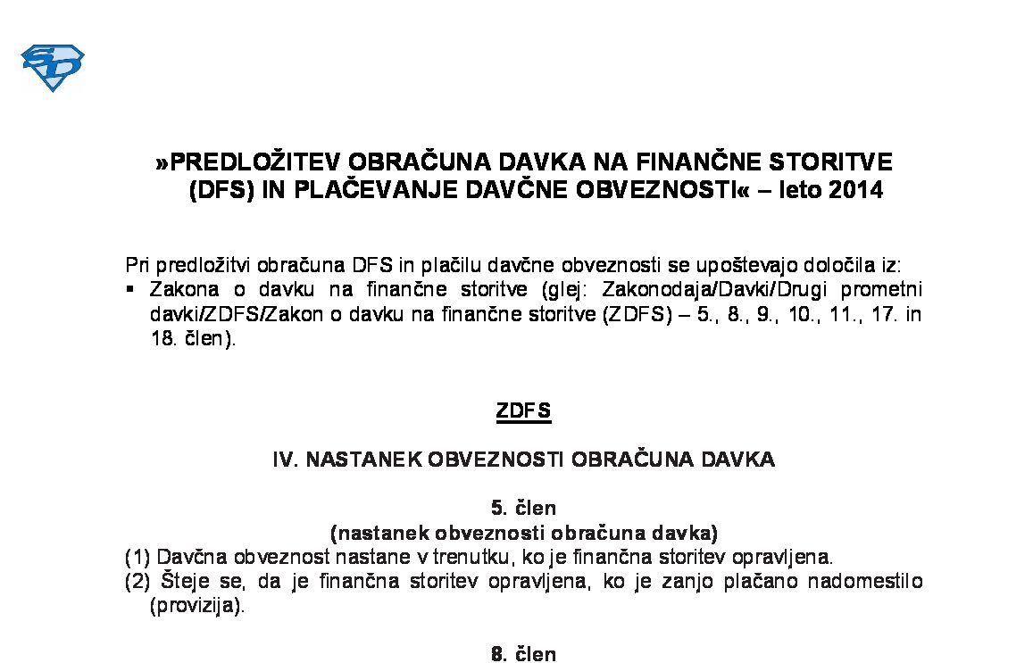 PREDLOŽITEV OBRAČUNA DAVKA NA FINANČNE STORITVE (DFS) IN PLAČEVANJE DAVČNE OBVEZNOSTI – leto 2025 04.12.2024
