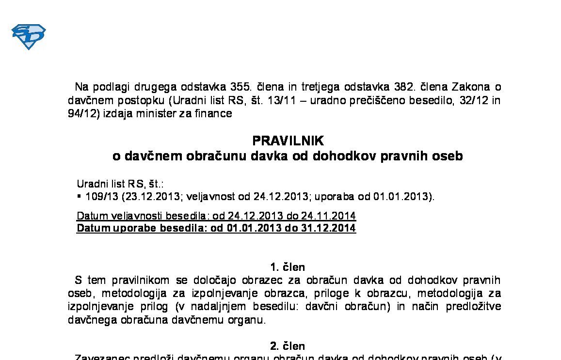 Pravilnik se uporablja za obračun DDPO, ki vključuje obdobje od 1. januarja 2013 dalje in se davčni obračun predlaga po dnevu uveljavitve sprememb pravilnika (tj. od 24.12.2013 naprej).