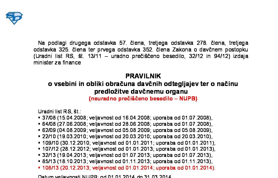 Pravilnik o obrazcih za napovedi za odmero akontacije dohodnine ter obrazcih za napovedi za odmero dohodnine od dohodka iz kapitala in dohodka iz oddajanja premoženja v najem (NUPB - neuradno prečiščeno besedilo) 20.12.2025 [!] 23.12.2025