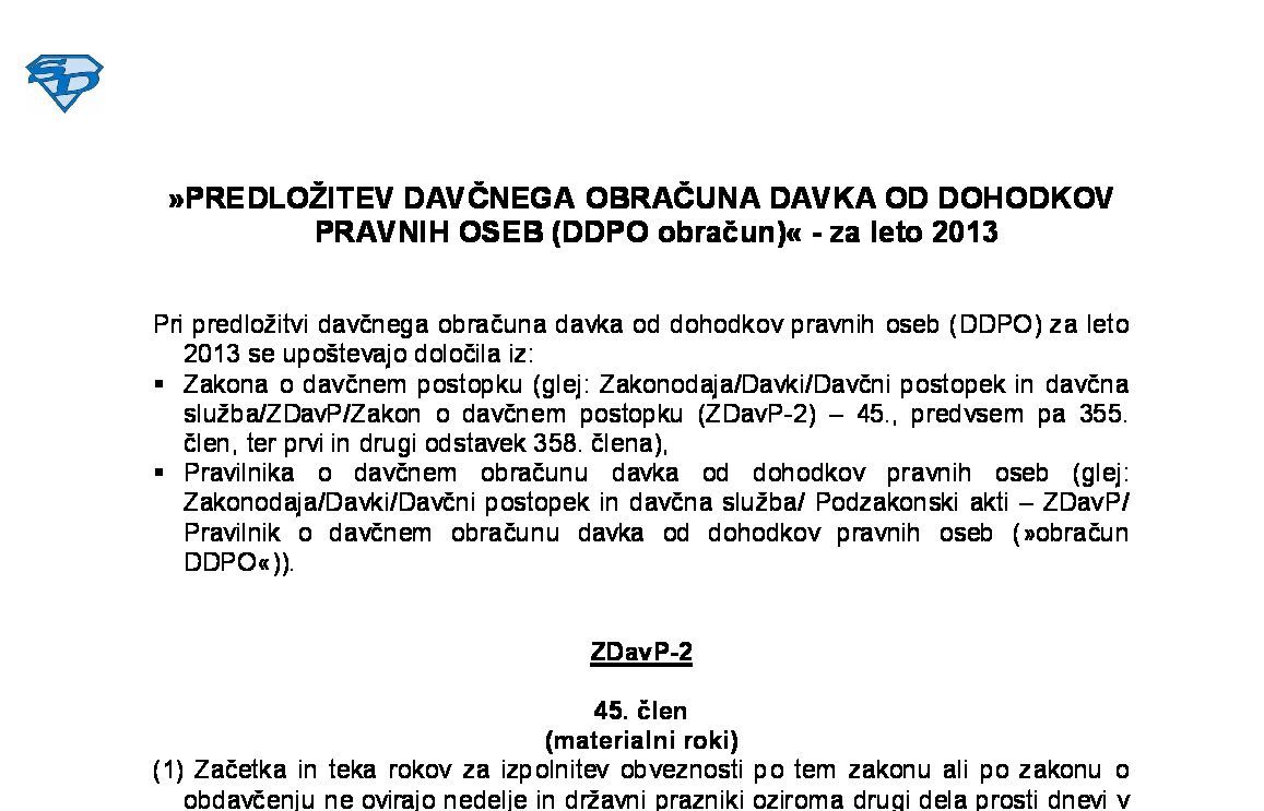 PREDLOŽITEV DAVČNEGA OBRAČUNA DAVKA OD DOHODKOV PRAVNIH OSEB (DDPO obračun) - za leto 2024 03.12.2024