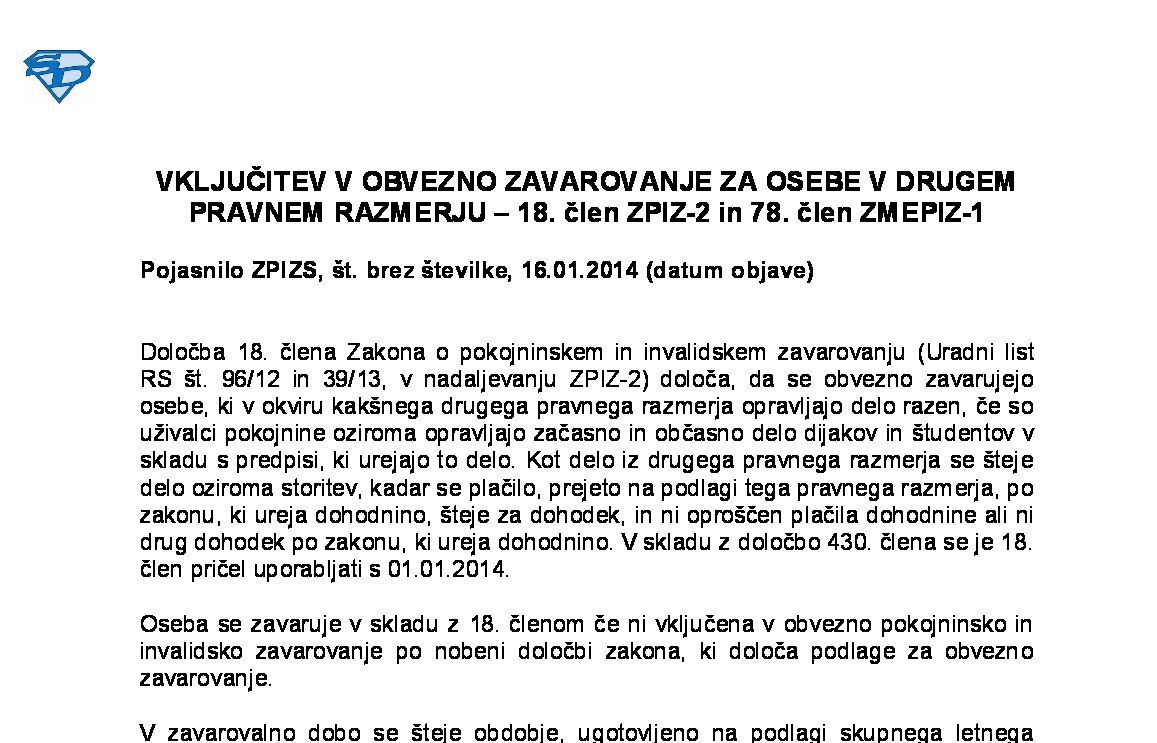 PLAČEVANJE PRISPEVKOV ZA SOCIALNO VARNOST ZA ZAVAROVANCE – OSEBE, KI OPRAVLJAJO DEJAVNOST KOT POSTRANSKI POKLIC (podrobnejši opis, 11. izdaja) 07.01.2026 15.01.2026