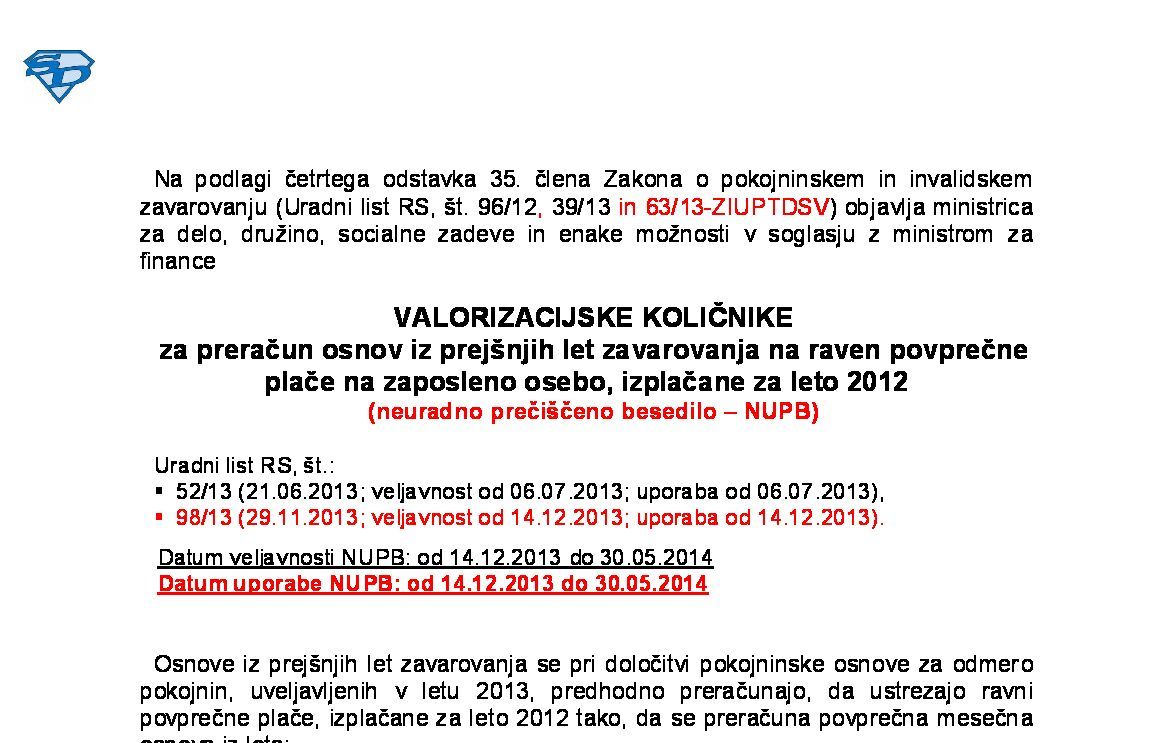 | Sklep o določitvi prispevkov za posebne primere zavarovanja (NUPB - neuradno prečiščeno besedilo) | 01.04.2025 | 31.03.2026 | 12.03.2025 | |
