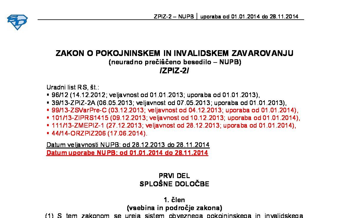 | ZAKON O POKOJNINSKEM IN INVALIDSKEM ZAVAROVANJU (ZPIZ-2 - neuradno prečiščeno besedilo) | 01.01.2026 | [!] | 20.11.2025 | |