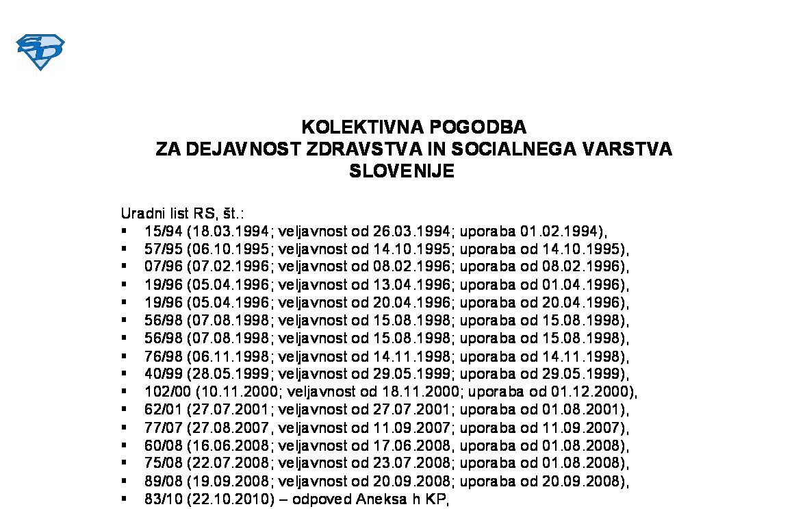 21.0b RAZLAGE Kolektivne pogodbe za dejavnost zdravstva in socialnega varstva Slovenije 06.04.2012 10.12.2025