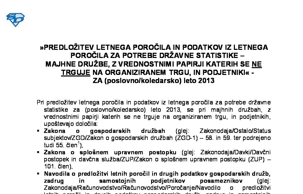 PREDLOŽITEV LETNEGA POROČILA IN PODATKOV IZ LETNEGA POROČILA ZA POTREBE DRŽAVNE STATISTIKE – MAJHNE DRUŽBE, Z VREDNOSTNIMI PAPIRJI KATERIH SE NE TRGUJE NA ORGANIZIRANEM TRGU, IN PODJETNIKI - ZA (poslovno/koledarsko) leto 2025 04.02.2026