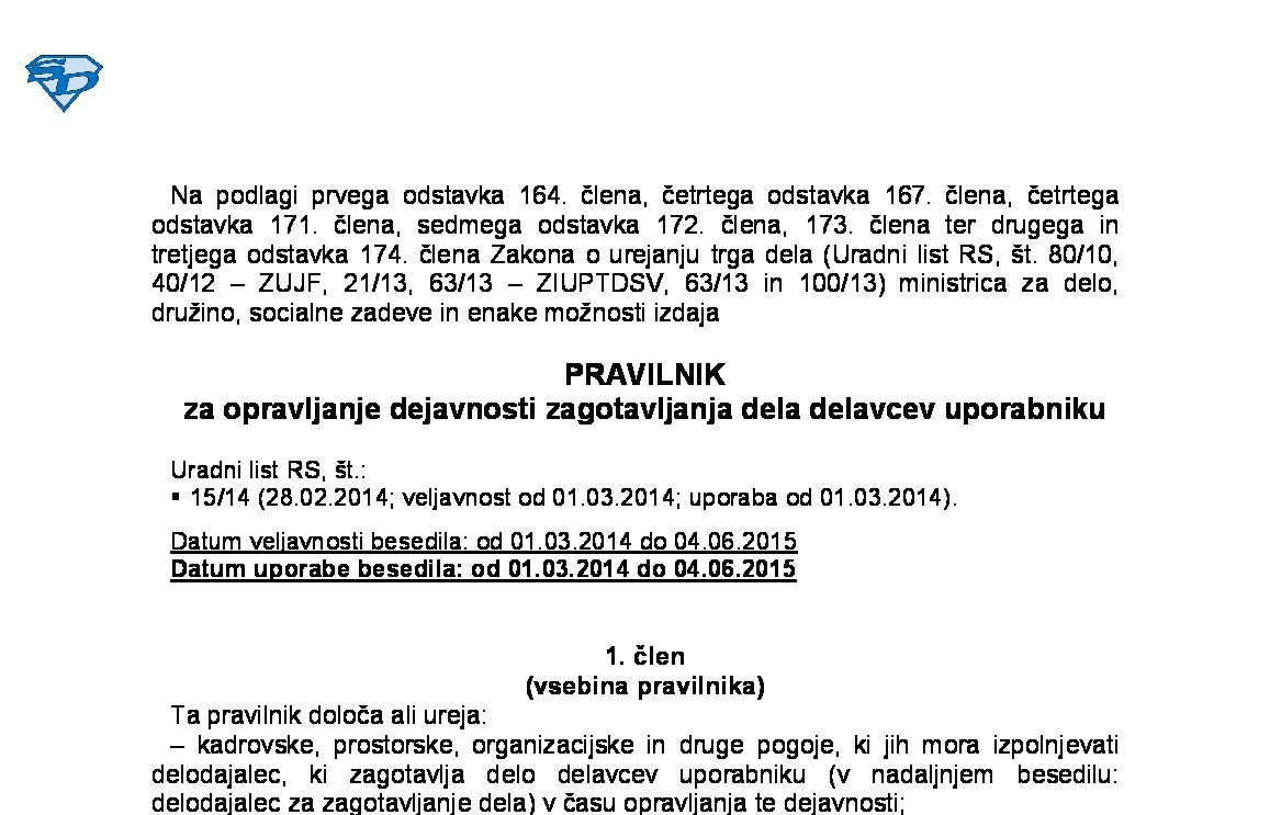| Pravilnik za opravljanje dejavnosti zagotavljanja dela delavcev uporabniku (NUPB - neuradno prečiščeno besedilo) | 18.10.2025 | 20.10.2025 | ||