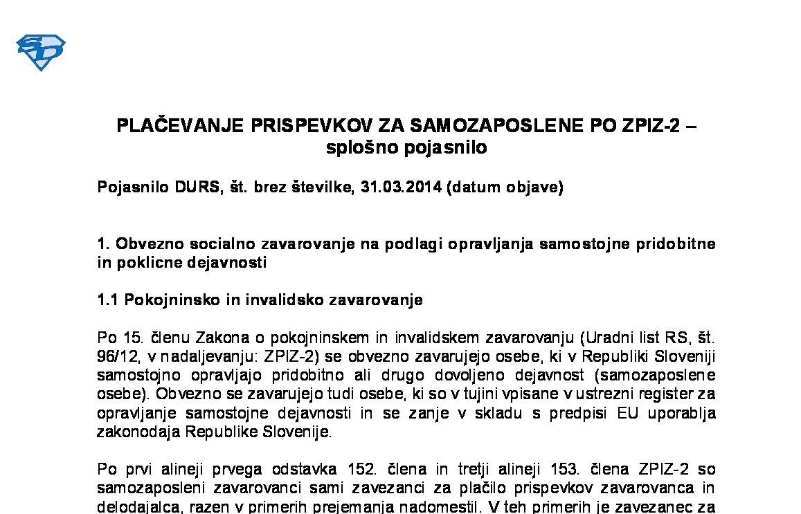 PLAČEVANJE PRISPEVKOV ZA SOCIALNO VARNOST ZA ZAVAROVANCE – OSEBE, KI OPRAVLJAJO DEJAVNOST KOT POSTRANSKI POKLIC (podrobnejši opis, 11. izdaja) 07.01.2026 15.01.2026