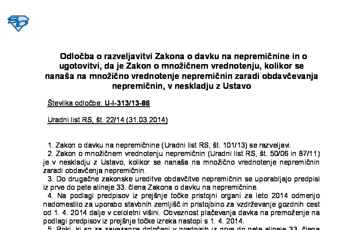 Odločba Ustavnega sodišča - drugi odstavek 10., četrti odstavek 12., tretji in četrti odstavek 28. člena ZDavNepr (11.02.2014) 06.02.2014 12.02.2014
