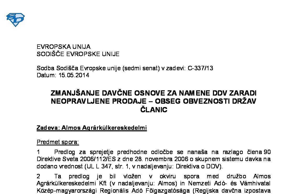VRAČILO DDV DAVČNIM ZAVEZANCEM, KI NIMAJO SEDEŽA V DRŽAVI ČLANICI VRAČILA – GLAVNA IN POMOŽNA STORITEV – UMETNA DELITEV ENOTNE STORITVE – Neobstoj premestitve predmeta dobave (C-234/24) 23.10.2025 24.10.2025