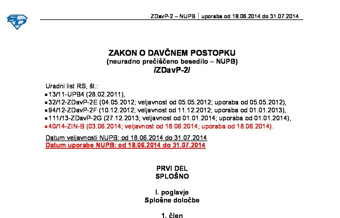 ZAKON O DAVČNEM POSTOPKU (ZDavP-2 - neuradno prečiščeno besedilo) 01.01.2024 [!] 10.12.2024 03.01.2024
