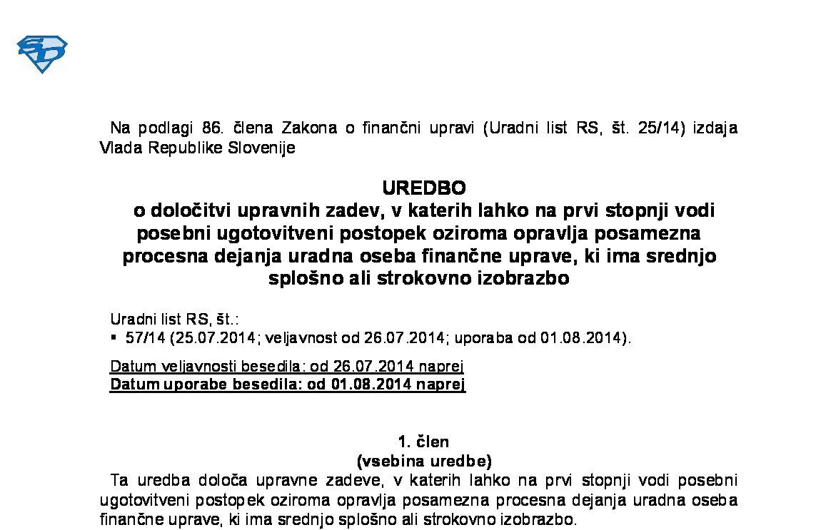 Uredba o določitvi finančnih uradov Finančne uprave Republike Slovenije 22.03.2025 10.03.2025
