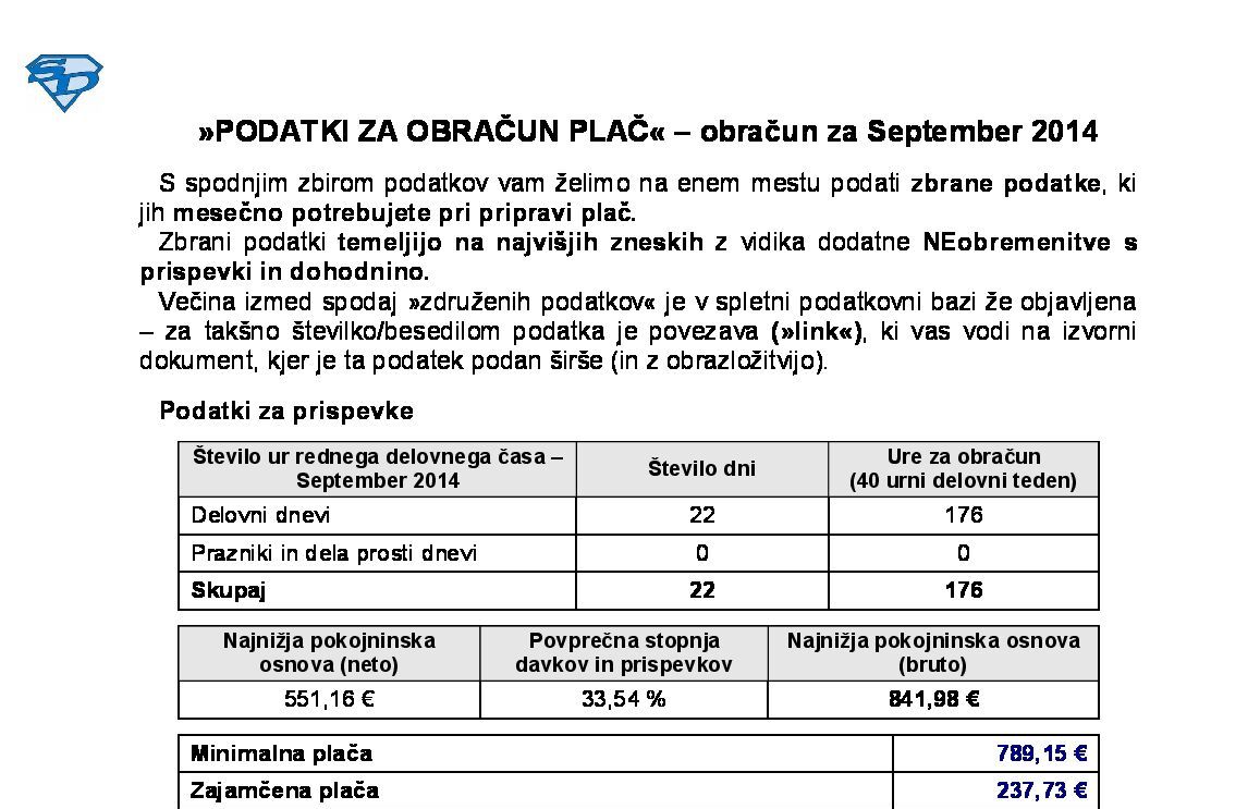 PODATKI ZA OBRAČUN PLAČ – obračun za SEPTEMBER 2025 22.09.2025