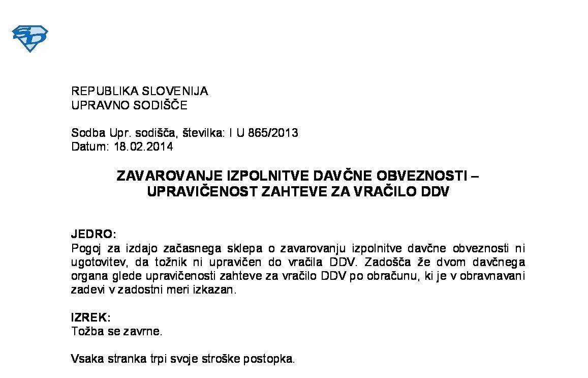 IZPOLNJEVANJE POGOJEV ZA DOBAVO BLAGA ZNOTRAJ UNIJE, OPROŠČENO PLAČILA DDV NA PODLAGI 46. ČLENA ZDDV-1 – Nepopolne CMR listine (I U 1704/2021-38) 27.11.2024 15.10.2025