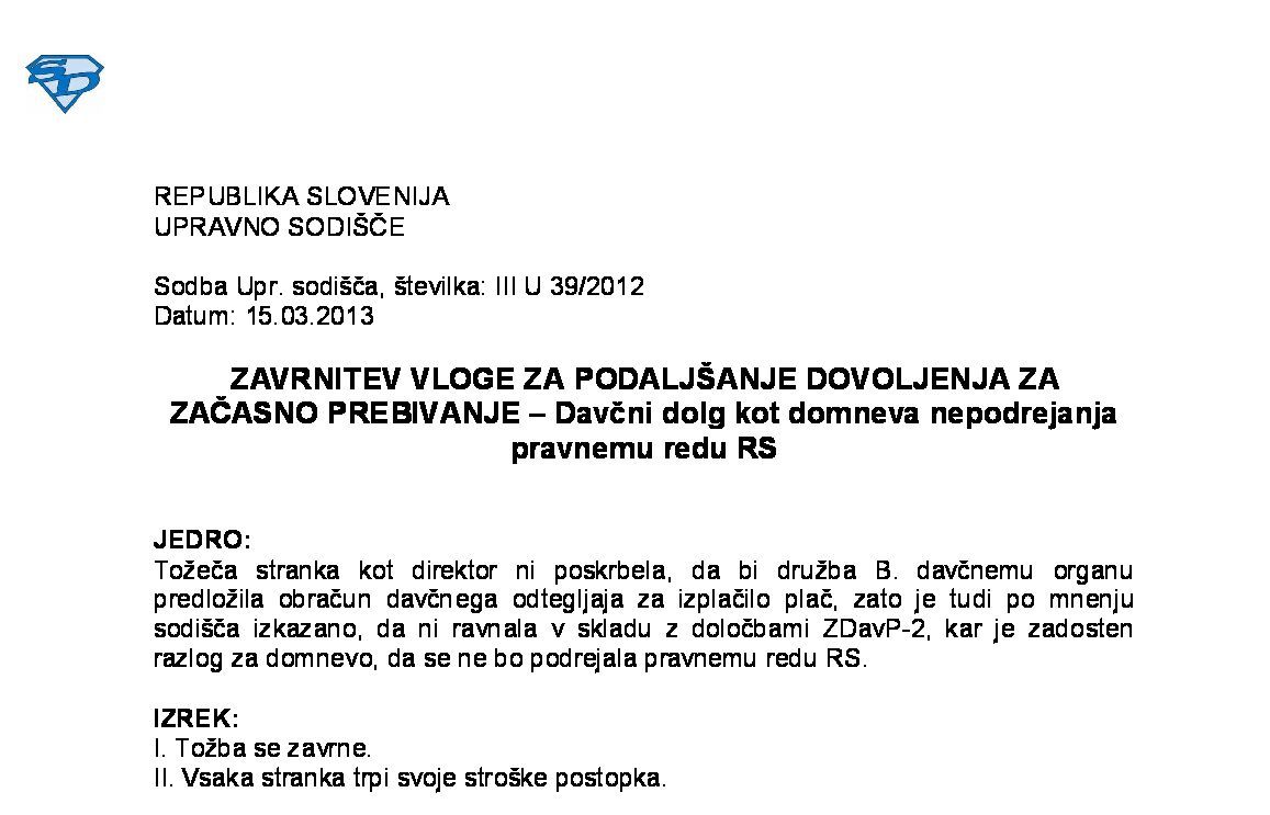 POSLOVODNA OSEBA IN DRUŽBENIK ZAVODA – Zavarovalna podlaga 040 – Prispevki za PIZ in prispevki za druga socialna zavarovanja (I U 880/2021-15) 19.06.2024 11.03.2025