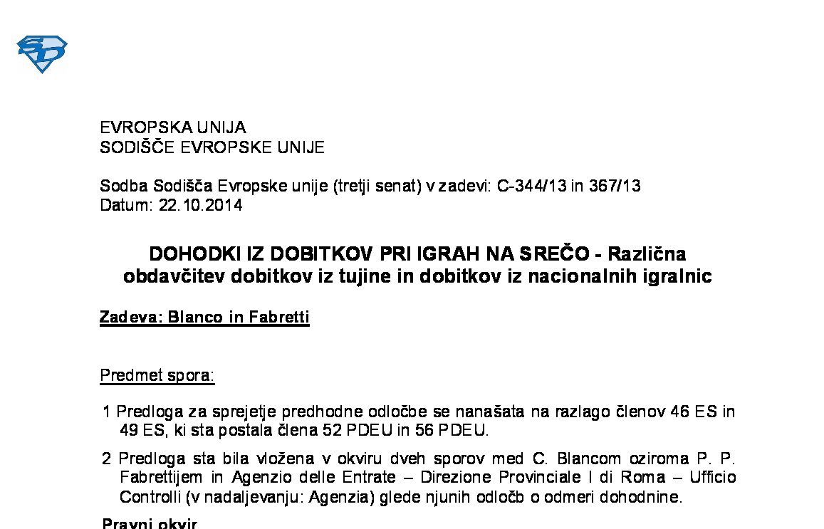 POSREDNI DAVKI NA ZBIRANJE KAPITALA - Povečanje kapitala družbe z denarnimi vložki in plačilo dajatve imenovane »kolkovina« (C-366/05) 21.06.2007 30.07.2007