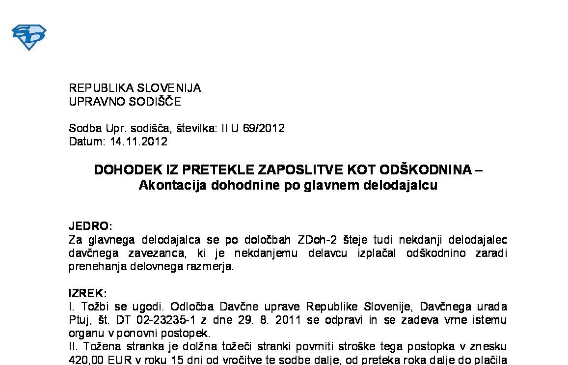 PREJEM POSLOVNEGA DELEŽA V DRUŽBI OB ANGAŽIRANJU PRI SANACIJI DRUŽBE – Darilo, ki se obdavčuje po ZDDD, ali dohodek obdavčen po ZDoh-2 (I U 1495/2022-13) 20.11.2024 10.07.2025