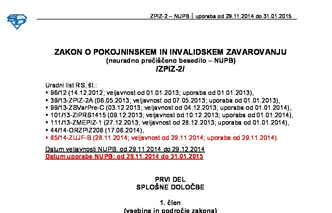 | ZAKON O POKOJNINSKEM IN INVALIDSKEM ZAVAROVANJU (ZPIZ-2 - neuradno prečiščeno besedilo) | 01.01.2026 | [!] | 20.11.2025 | |