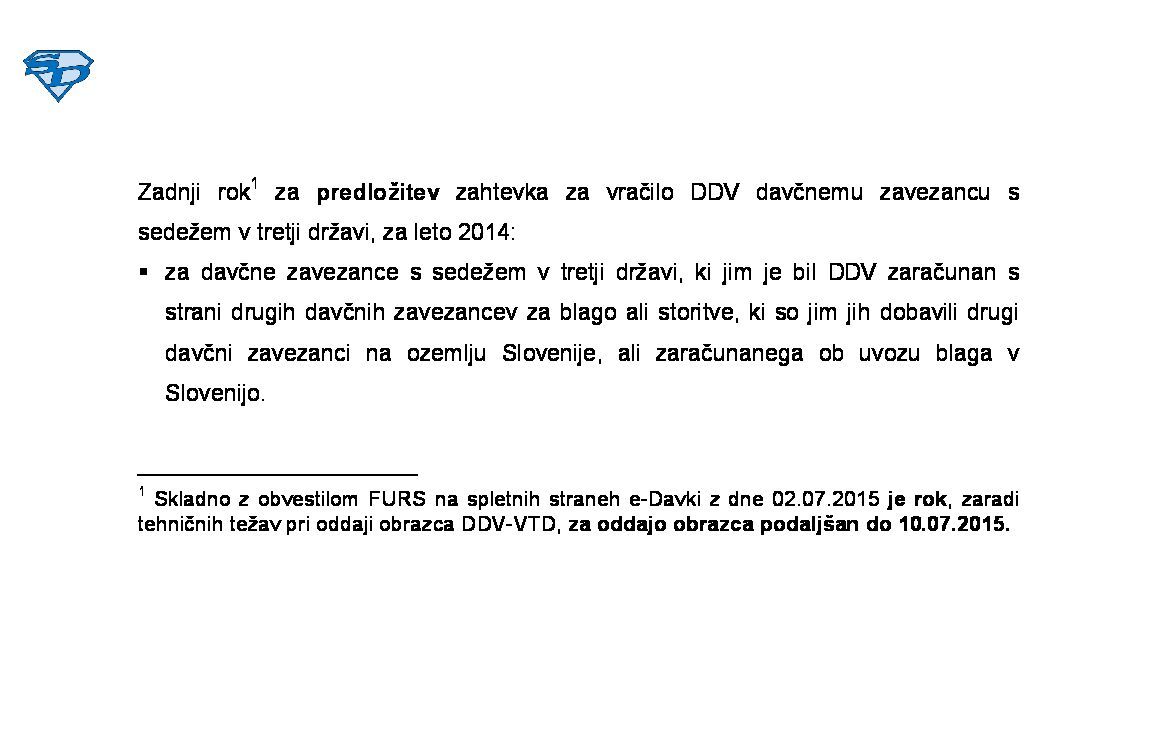 Predložitev zahtevka za vračilo DDV davčnemu zavezancu s sedežem v Sloveniji, ki ima pravico do vračila v drugi državi članici 2026-09-30 00:00:00