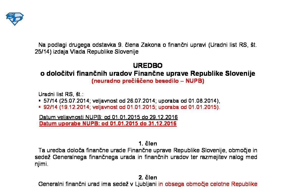 Uredba o določitvi finančnih uradov Finančne uprave Republike Slovenije 22.03.2025 10.03.2025