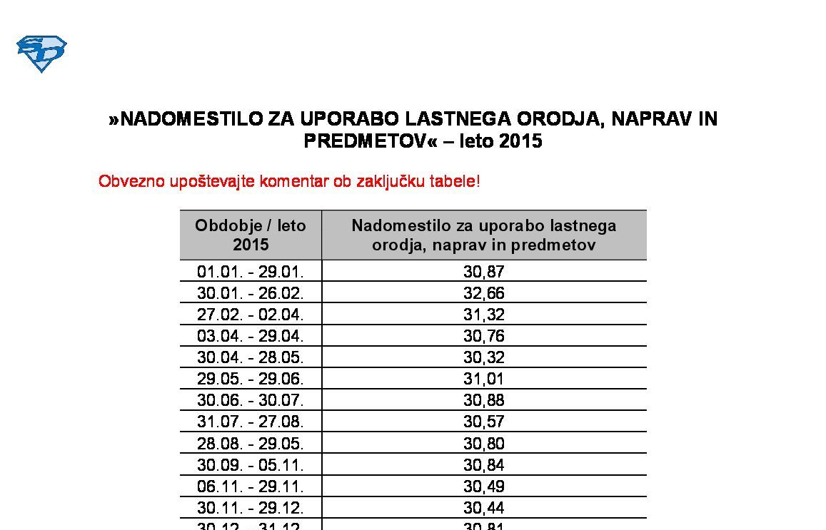NADOMESTILO ZA UPORABO LASTNEGA ORODJA, NAPRAV IN PREDMETOV - leto 2024 26.11.2024